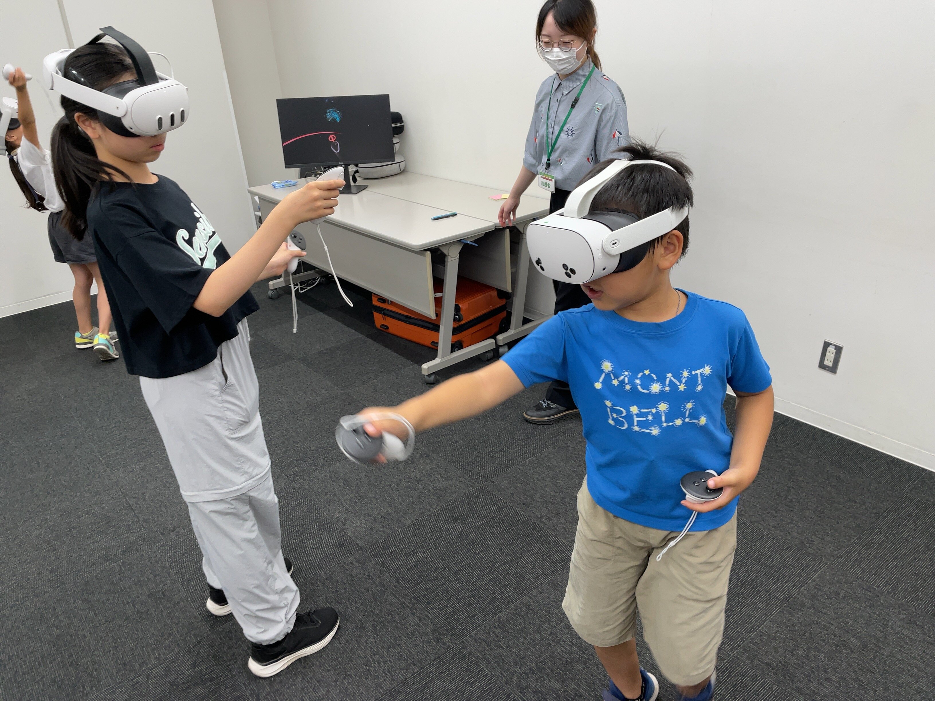 筆を使った手書きアートやVR体験、eスポーツ、スマホ分解教室等を実施し、業界のPRを行いました。