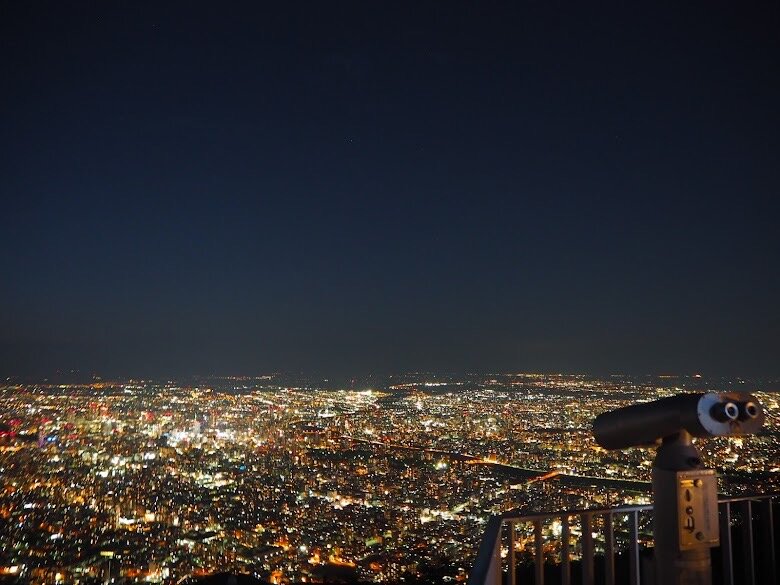 標高531mから見下ろす光の大パノラマに圧倒。石狩平野に広がる街並みが光のじゅうたんのように見えます。